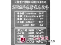 银中杨3cm-8cm、旱柳2.5cm-3.5cm、垂柳3cm-5cm、小黑14 二根二杆、黑龙1号、小乘黑、杞柳、松江柳、柽柳;